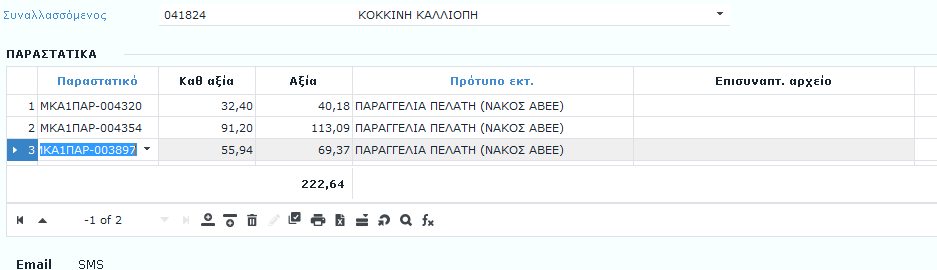 Μετά (στο πλέγμα με τα παραστατικά) επιλέγουμε τα παραστατικά (παραγγελίες) που θέλουμε να του στείλουμε.
